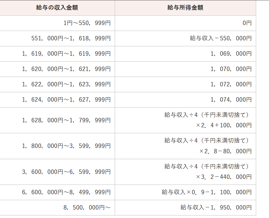私の給与収入は2,520,000円なので、以下の表に当てはめると