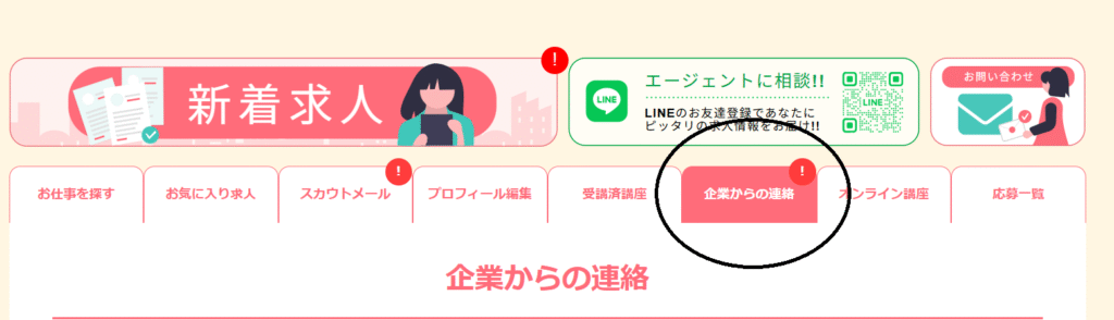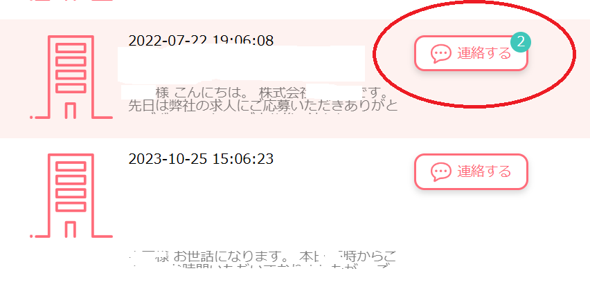 企業から連絡が入っている場合は、連絡するのボタンに連絡数の表示が付きます。新規連絡が来ていないか確認をします。