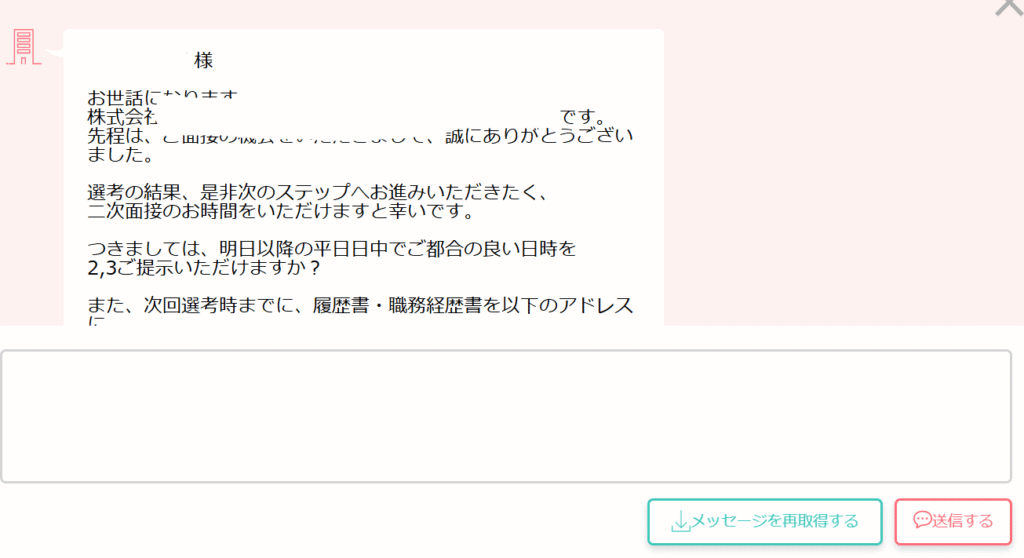 このようにチャットで応募企業とやり取りをします。在宅勤務のお仕事なので、基本的に面接はZOOMです。あらかじめZOOMアプリの取得と使い方を確認しておくことをおススメします。